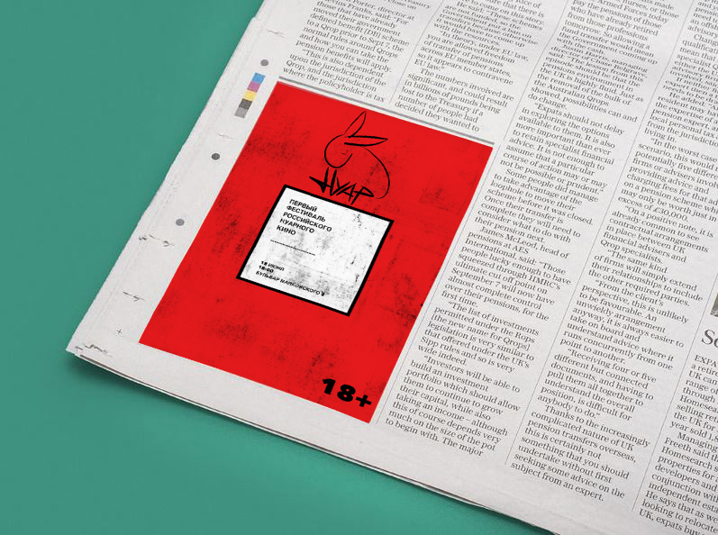 Логотип представляет собой минималистическое изображение кролика и надпись под ним «нуар», в грубом авторском шрифте; логотип имеет русское написание. Современные российские кинематографисты не могут не затронуть тему режущей любви к Родине, дискредитированного патриотизма и различного вида пропаганд, посему логично, что на фестивале будут показываться злободневные, скандальные картины. Кролик является образом пронырливости, что в данном случае означает, что ни одна проблема современности не будет забыта, все грехи будут вытянуты наружу и показаны в российском кино. Тонкие линии кролика противопоставлены достаточно грубому и резкому написанию слова «нуар», как противопоставляется безответная любовь к Родине и жестокий быт современного общества. Животрепещущие вопросы, поднятые в депрессивном кино, пронизанном жестокостью современности, не могут не привлечь к себе внимание общественности, что вероятнее всего будет вызывать критику и попытки закрыть кинофестиваль, вот почему кролик изображен спящим, а для кого-то и мёртвым.